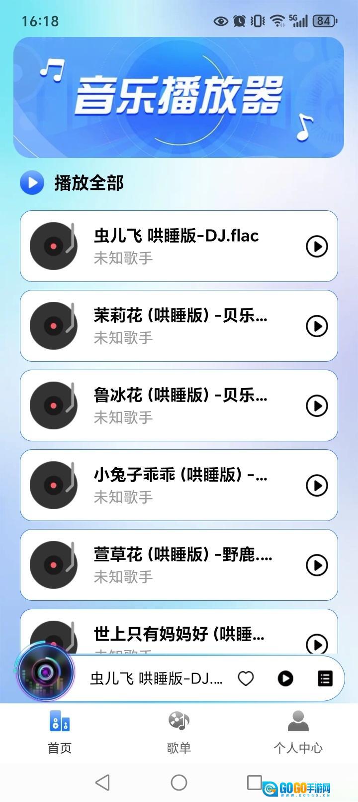 《全免歌曲播放器》是杭州冰宇信息技术有限公司开发的手机本地音乐播放应用,能够扫描手机内各类歌曲文件,支持列表循环、随机、单曲等播放模式,还可创建歌单整理本地音乐,方便用户收藏喜爱的曲目。