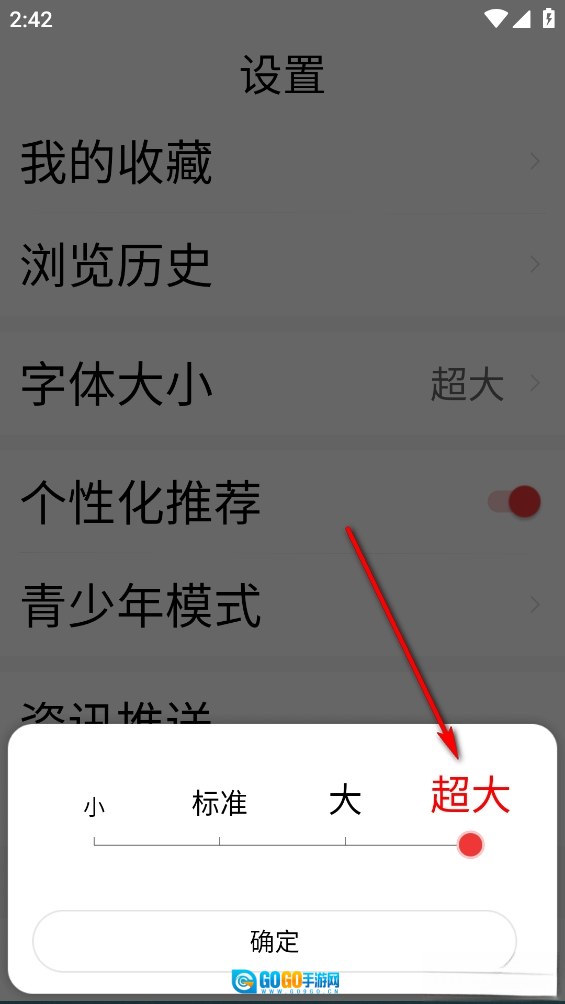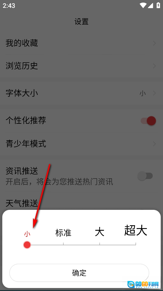 点击【字体大小】