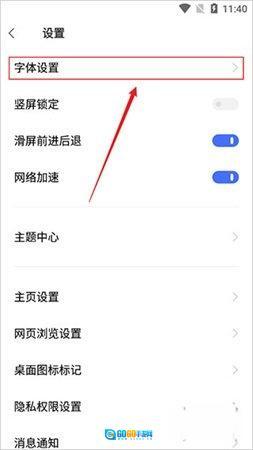 进入设置页面后,找到并点击【字体设置】选项。