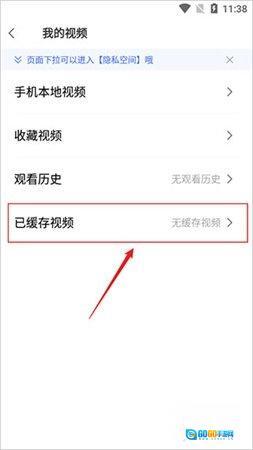 进入【我的视频】页面后,找到并点击【已缓存视频】选项,具体位置可参考图示。