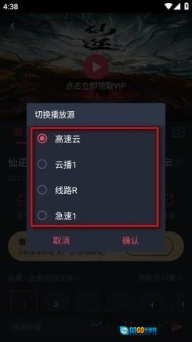 2、紧接着会弹出名为“切换播放源”的框体,从中挑选其他源,点击“确认”,播放问题即可得到解决。