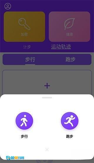 还能在界面上方切换到“运动轨迹”页面,之后点击右侧的“+”号,从步行、跑步等运动类型里挑选自己想进行的项目。