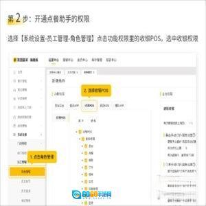 请您按照以下路径操作:先进入【系统设置】,接着依次点击【员工管理】和【角色管理】;然后在功能权限模块中查找收银POS选项,并勾选对应的收银权限。