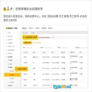 首先,登录管家后台,进入运营中心板块,接着依次点击【系统设置】-【员工管理】-【员工账号】,最后点击【创建员工账号】按钮即可。