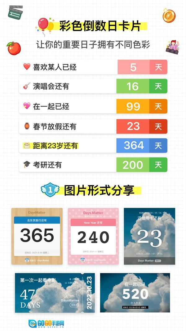 支持记录节日、生日、恋爱日、纪念日、高考倒计时、工作任务、家庭聚会等各类个人与公共事件,无添加数量限制。系统可自动计算剩余天数,精准呈现倒计时信息,全方位满足用户不同场景的记时需求。