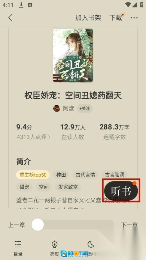 为了提升用户夜间阅读的舒适度,可开启软件的夜间阅读模式,它会自动将亮度调节至与环境相适配的状态。