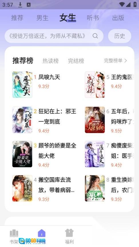 书架能让用户把自己喜欢的小说收藏起来,便于反复阅读。