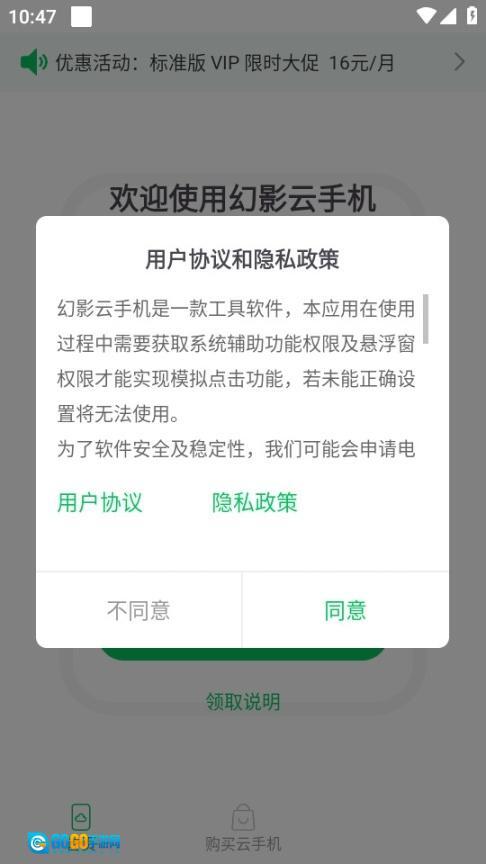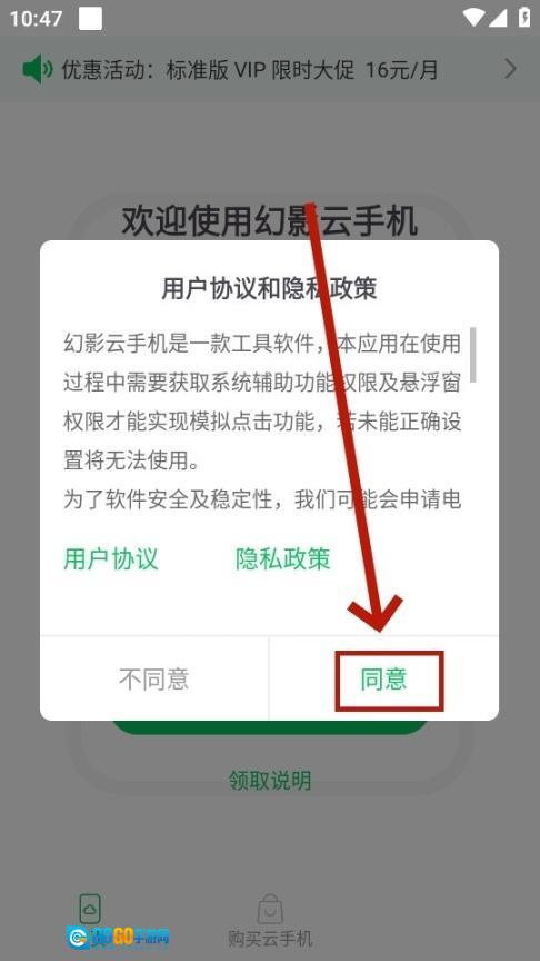安装并打开幻影云手机,