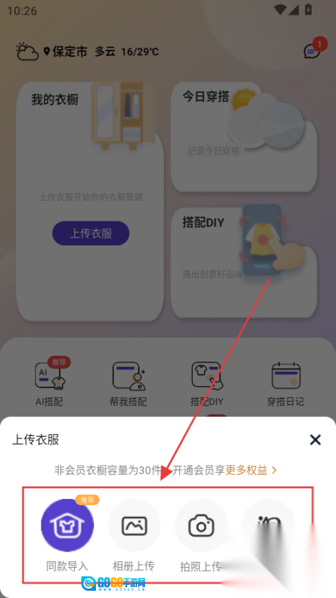 DIY创作空间:打破模板束缚,用户能自由叠加衣物图片设计穿搭,支持保存与分享。