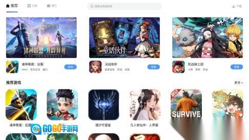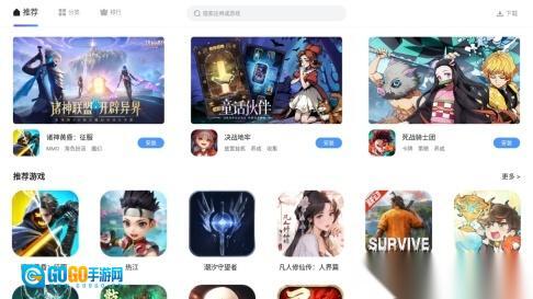 进入首页后,推荐板块会为你展示当下热门的游戏资源,你可以在这里挑选自己喜欢的游戏类型,然后点击【安装】按钮。