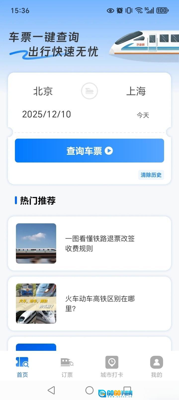 铁路火车票助手App是一款融合火车票务服务与城市文化探索功能的综合出行平台。它不仅提供覆盖全国的实时车票查询、在线购票、改签退票等一站式铁路出行服务,还创新性地将旅程拓展至目的地城市,借助智能打卡系统助力用户记录足迹、发掘城市魅力,使每一次铁路旅行都成为连贯的美好体验。
