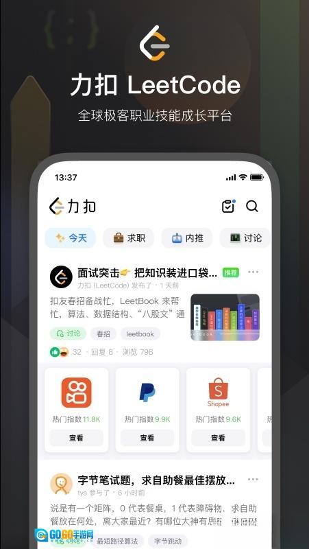极客社交生态:汇聚百万技术从业者,构建“刷题-讨论-内推”的闭环社区。在这里,用户既能分享解题思路、交流职场经验,还能借助“战绩墙”展现个人技术影响力。
