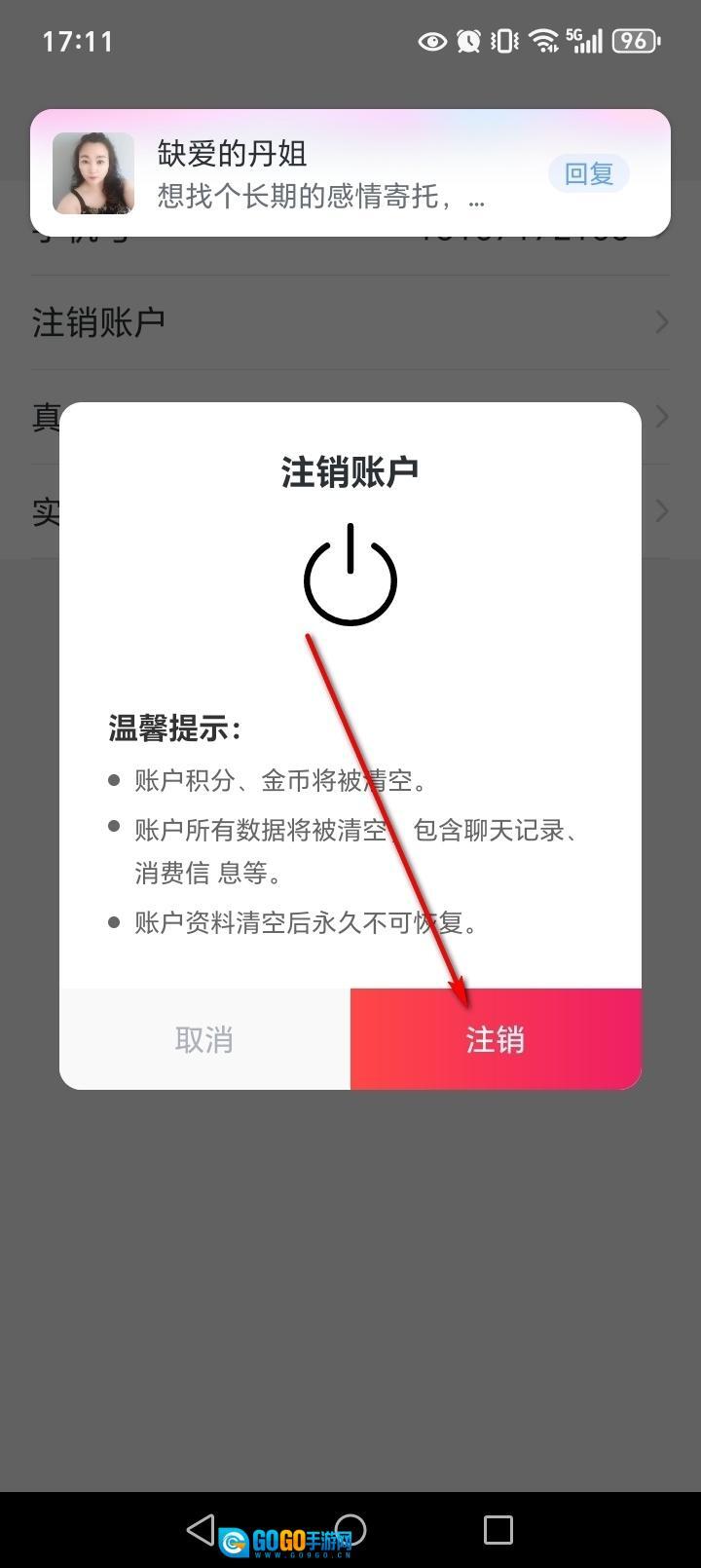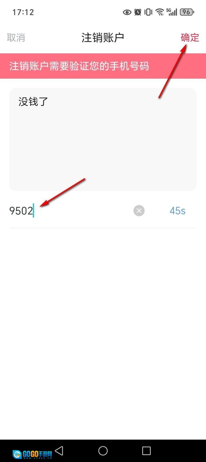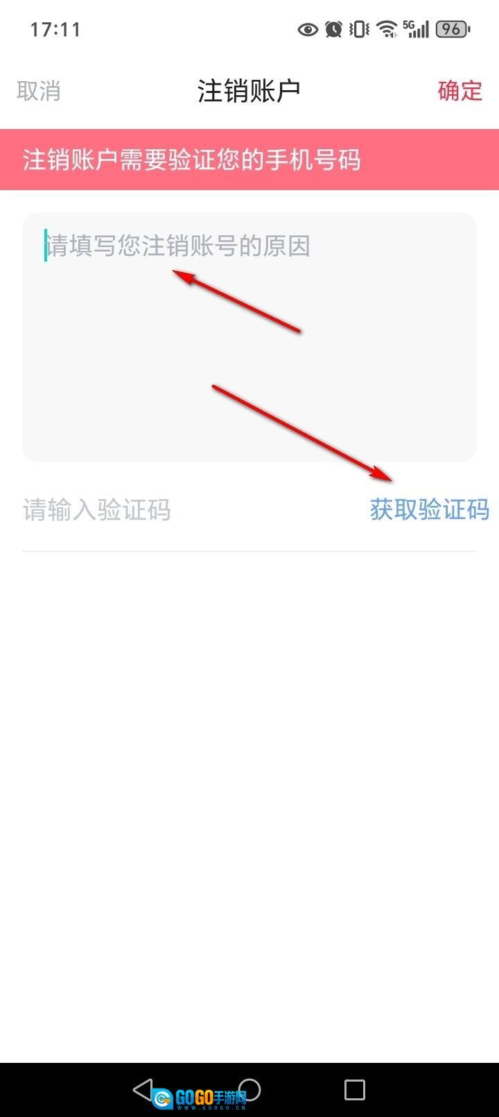 输入验证码,点击【确定】即可注销账号