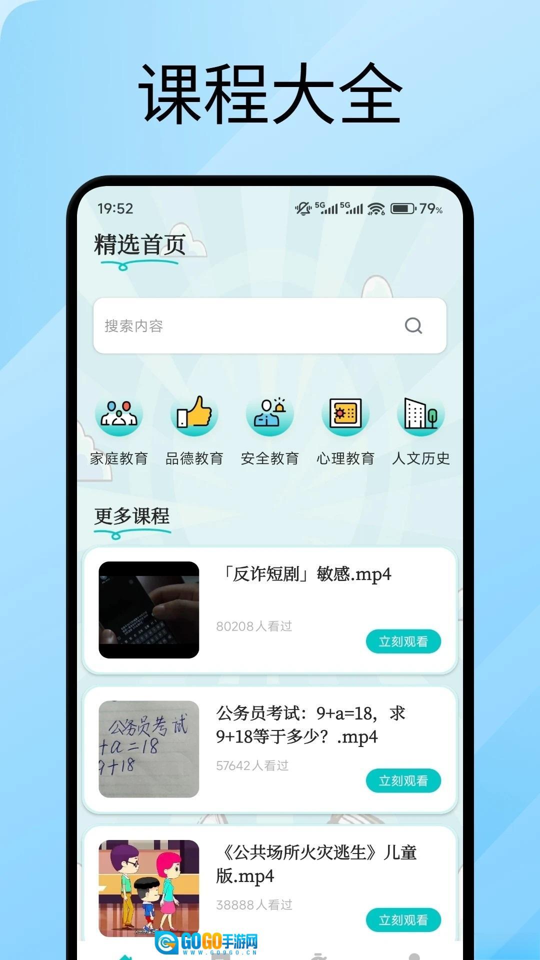 课程多元集成:聚合家庭教育、品德教育、安全教育等多领域课程,还设有公务员考试、藏语学习等考证类内容,满足不同年龄、职业人群的多样化学习需求,构建全方位知识体系。