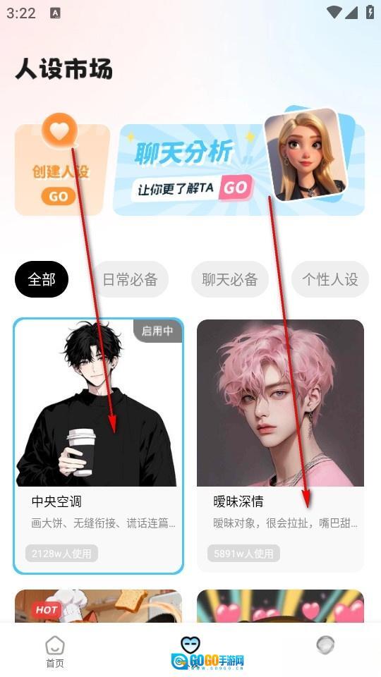 情感关系的建立需要对方对你的人设留下较深的印象,所以我们可以在人设市场中去寻找自己所需的人设。