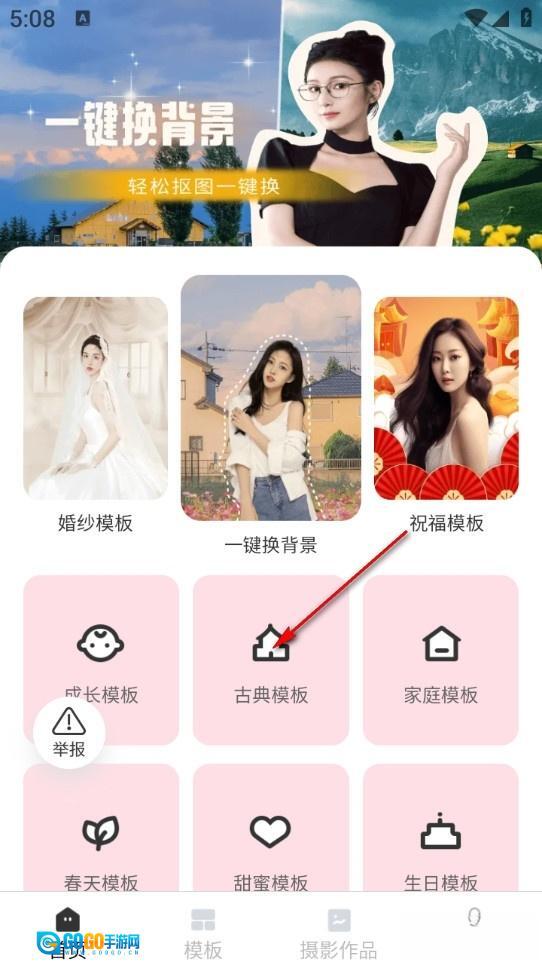 进入软件后在主页分类选择模板