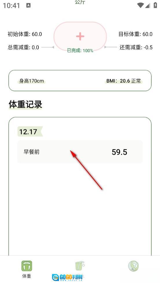最后退出就能在主页面看到体重记录了