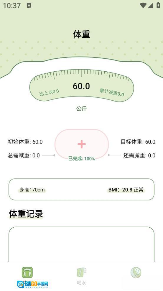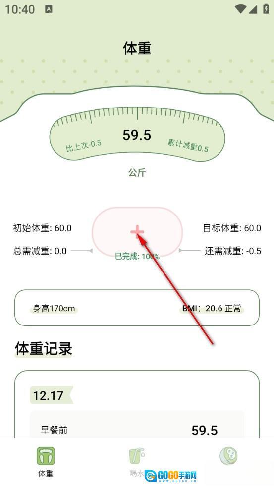 进入软件后点击中间的加号记录体重
