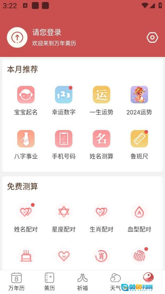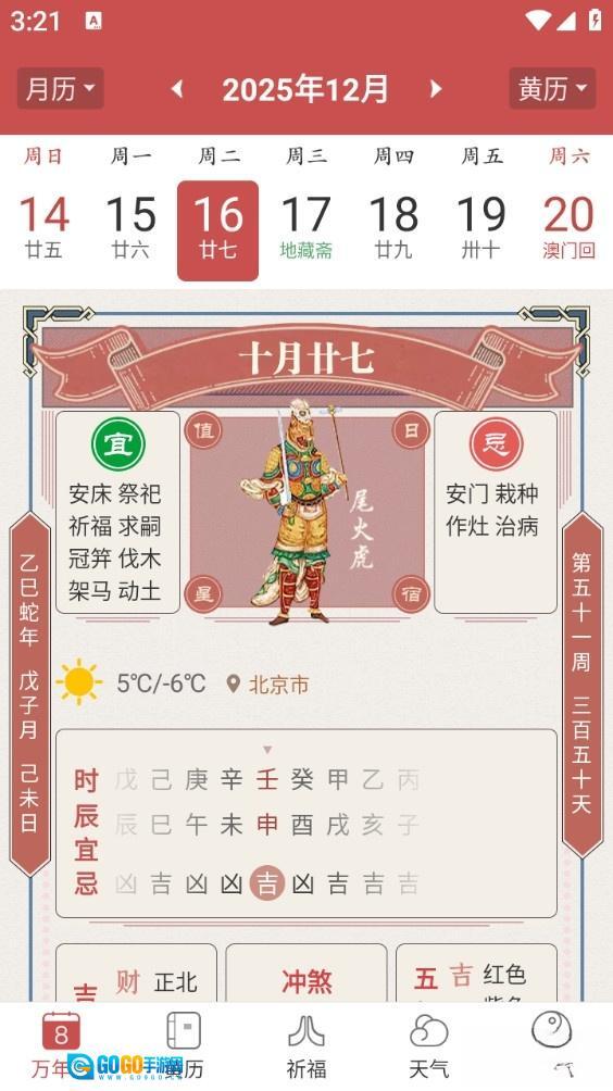《万年黄历》是一款实用性很强的日历信息查询工具,用户可以在这里查询各类节假日时间,也能查看黄历运势相关内容,以便更合理地安排后续行程;除此之外,软件还集成了天气预报、测量尺、宝宝起名等丰富功能,为人们的日常生活提供了不少便利。