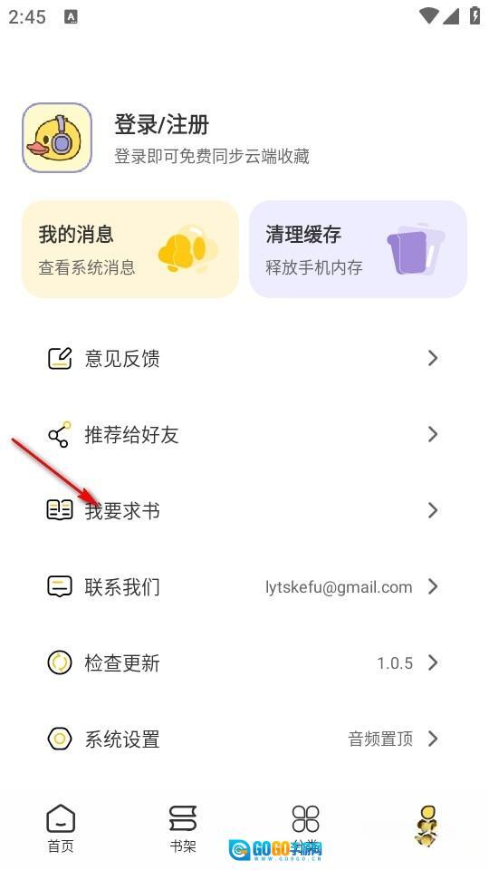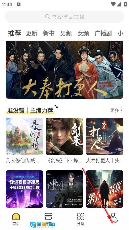 首先打开鸭趣听书进入主页,点击右下角我的。