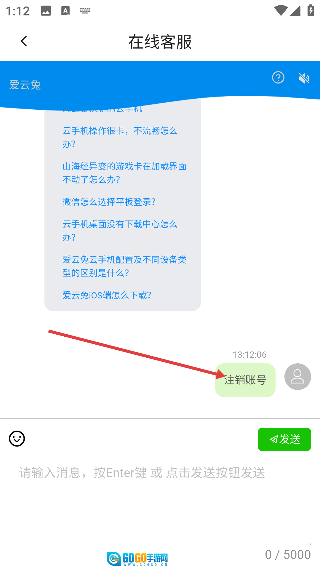 4、进入在线客服页面后,输入【注销账号】并发送,随后根据客服的指引完成账号注销的相关操作。