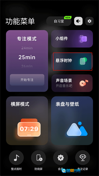 1、在本站安装点击打开进入,点击首页的悬浮时钟。