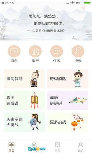 这款软件收录了1000余首中国古诗相关内容,设计了丰富多样的趣味题型,涵盖选择题、填字题、看图猜诗句、诗句识别等多种形式。