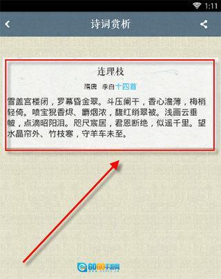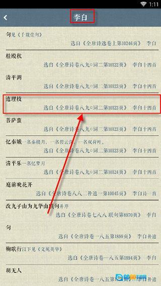 2,新增了诗词目录的功能,便于查找诗词。