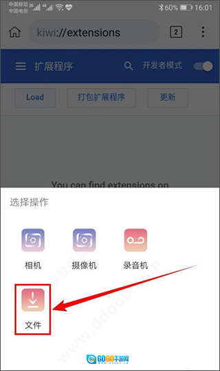 9、接着找到手机里 crx 格式的 Tampermonkey 扩展插件文件,点击该文件。