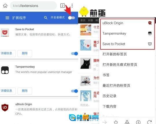 ps:尽管对扩展的兼容性表现尚可,但因为扩展大多是针对桌面浏览器开发的,所以有些扩展即便成功安装,在手机端使用时也可能出现问题,这一点暂时没有解决办法。