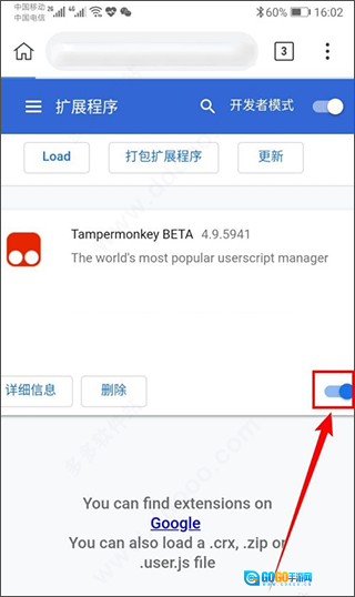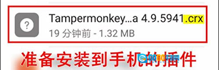 2、准备好需要安装到手机上的.crx格式扩展插件,这类插件可在第三方插件网站获取,这里我选用了使用范围非常广泛的“Tampermonkey”插件来做演示。