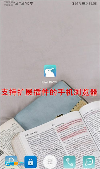 1、本站安装kiwi浏览器,点击打开软件。