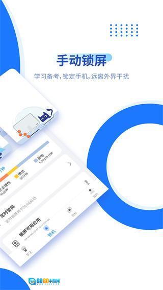 1、支持一键手动锁屏或自动锁屏,锁定手机后可隔绝外界干扰,让人能更专注地投入学习、备考与工作。