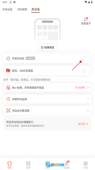 2、选择开启小组件盒子灵动岛的开关按钮。