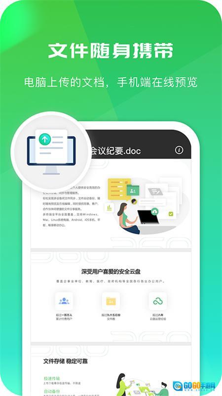 移动办公:随时随地查看文件,手机支持主流文档在线预览。