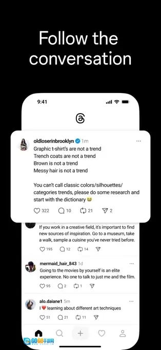 Threads是一款对标推特的社交应用,用户需通过Ins账户完成注册后,即可在平台上发布图片、视频、文字等多种形式的内容。对于感兴趣的内容,用户能够进行点赞、评论和转发,以此实现互动交流;同时,用户还可以借助该平台与朋友及喜爱的创作者建立联系,找到属于自己的社区,进而和志同道合的人展开互动。
