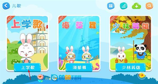 1、打开软件后,进入儿歌界面,点击上学歌入口,进入该儿歌播放界面。