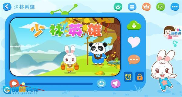 4、在少林英雄播放界面,点击左下角播放按钮,可开始播放该儿歌,界面呈现儿歌相关画面和功能按钮。