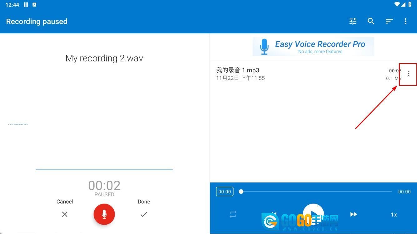 1、进入录音列表找到【我的录音1.mp3】,点击右侧三点菜单,可开启编辑分享等功能,满足录音后续处理需求。