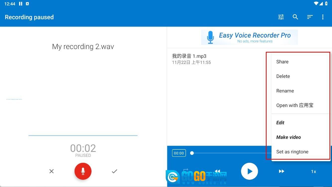 2、在弹出菜单选择【Edit】-【Setasringtone】,可编辑录音制作视频或设置铃声,丰富录音使用场景。
