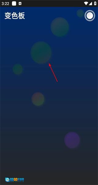 3、返回工具列表并选择变色板工具,进入后会看到蓝色背景的界面,上面搭配着多个不同颜色的光斑效果。