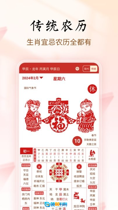 2、融入了黄历宜忌、生肖运势等丰富的民俗资讯,在助力用户认识传统文化的同时,也为其生活决策提供了实用参考。