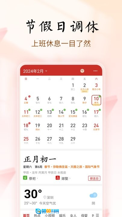 2、该应用除了具备基础的日历服务外,还融合了天气预报、新闻资讯等实用功能,能够一站式满足用户的各类生活需求。