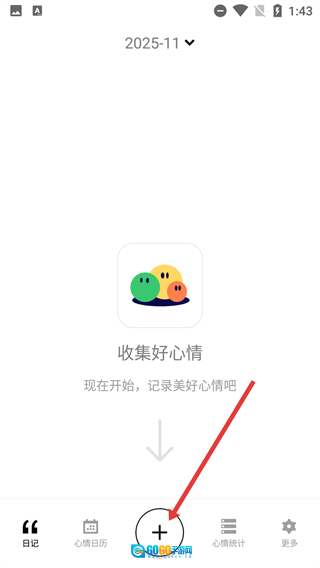 1、打开心情记录软件后,在首页点击底部的【+】按钮,即可进入心情记录界面。