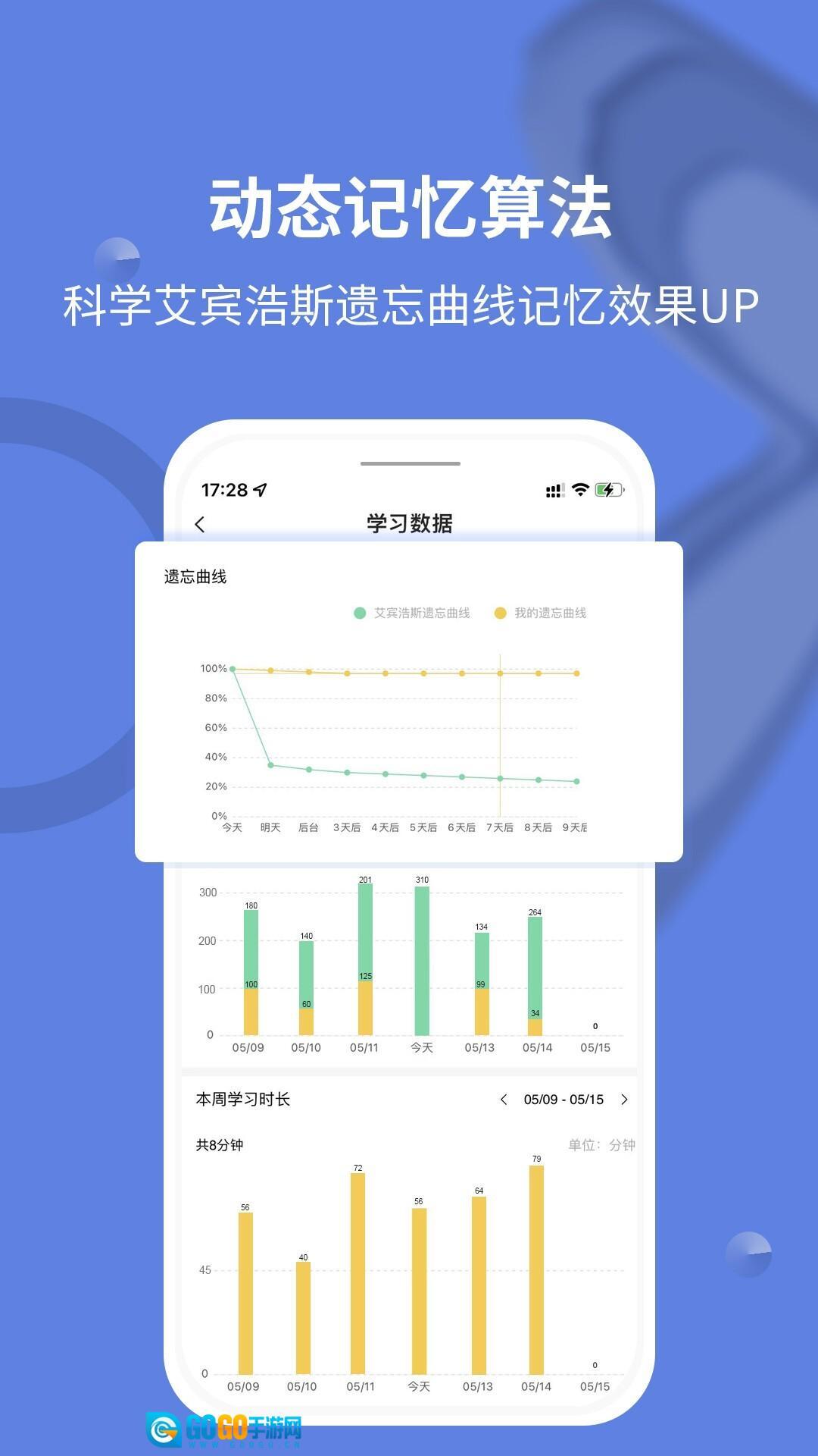 动态记忆算法能够记录依据科学艾宾浩斯遗忘曲线的效果管理情况,对相关学习数据进行实时监控,这一功能十分实用。