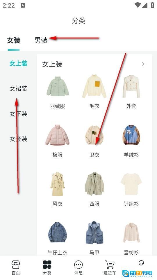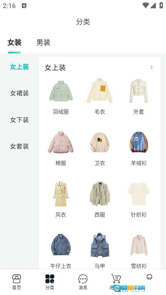 点击分类也可以寻找指定品类衣服的货源。