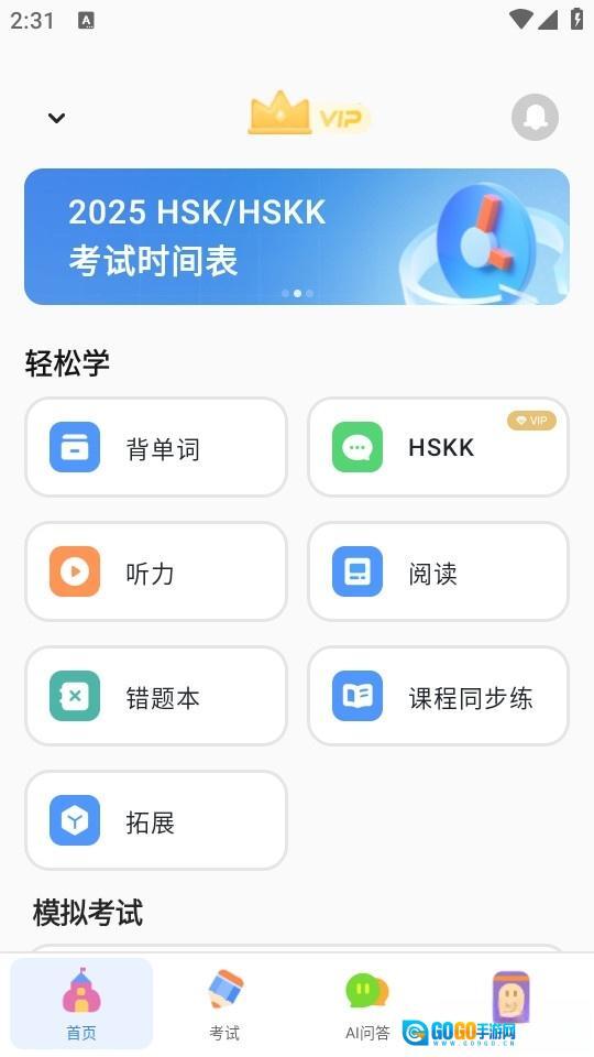 《e学中文》是一款专注于中文考试备考辅助的中文学习软件。用户可依据自身实际情况,在软件内灵活开展中文学习。该软件收录了海量HSK中文考试题库,用户能根据个人需求,自主选择不同难度的题库题目进行训练。此外,软件还具备听力练习、阅读训练以及单词背诵等实用功能,并且接入了AI技术,助力用户更高效便捷地学习中文。