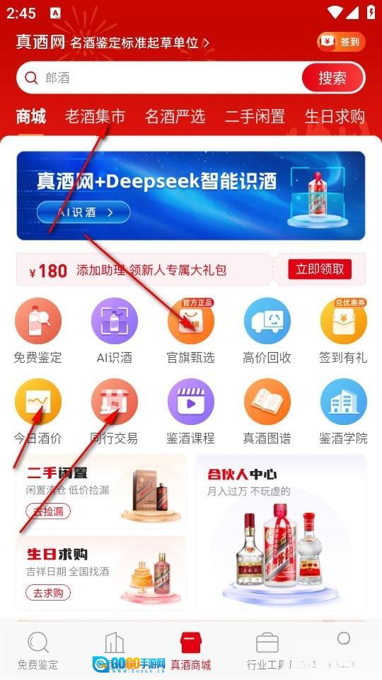 打开软件进入首页后,能看到多个售卖酒水的入口,大家可依据自身喜好与需求挑选合适的渠道进行查找。