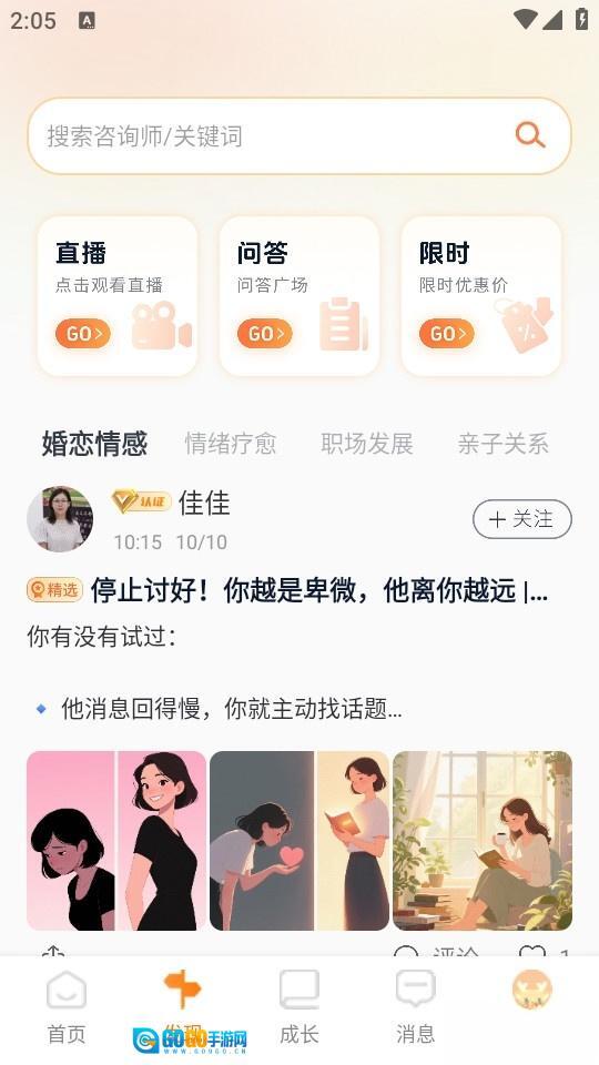 《心鹿》是一款可在线开展多种情感咨询服务的专业心理咨询软件。无论是生活、工作还是感情方面遭遇的心理情绪困扰,都能通过这款软件咨询并获取解决方案。在这里,我们能找到各类专业心理咨询师,他们也会定期分享职场发展、亲子关系等问题的应对方法,助力我们更好地应对生活中的困境与挑战。