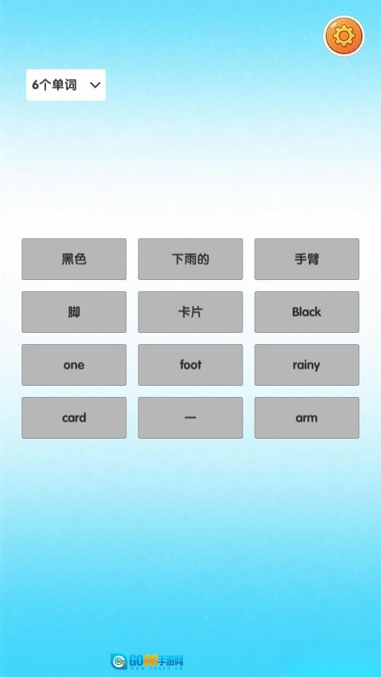 点击一个英文单词和对应的正确中文词汇翻译,即可开始游戏。